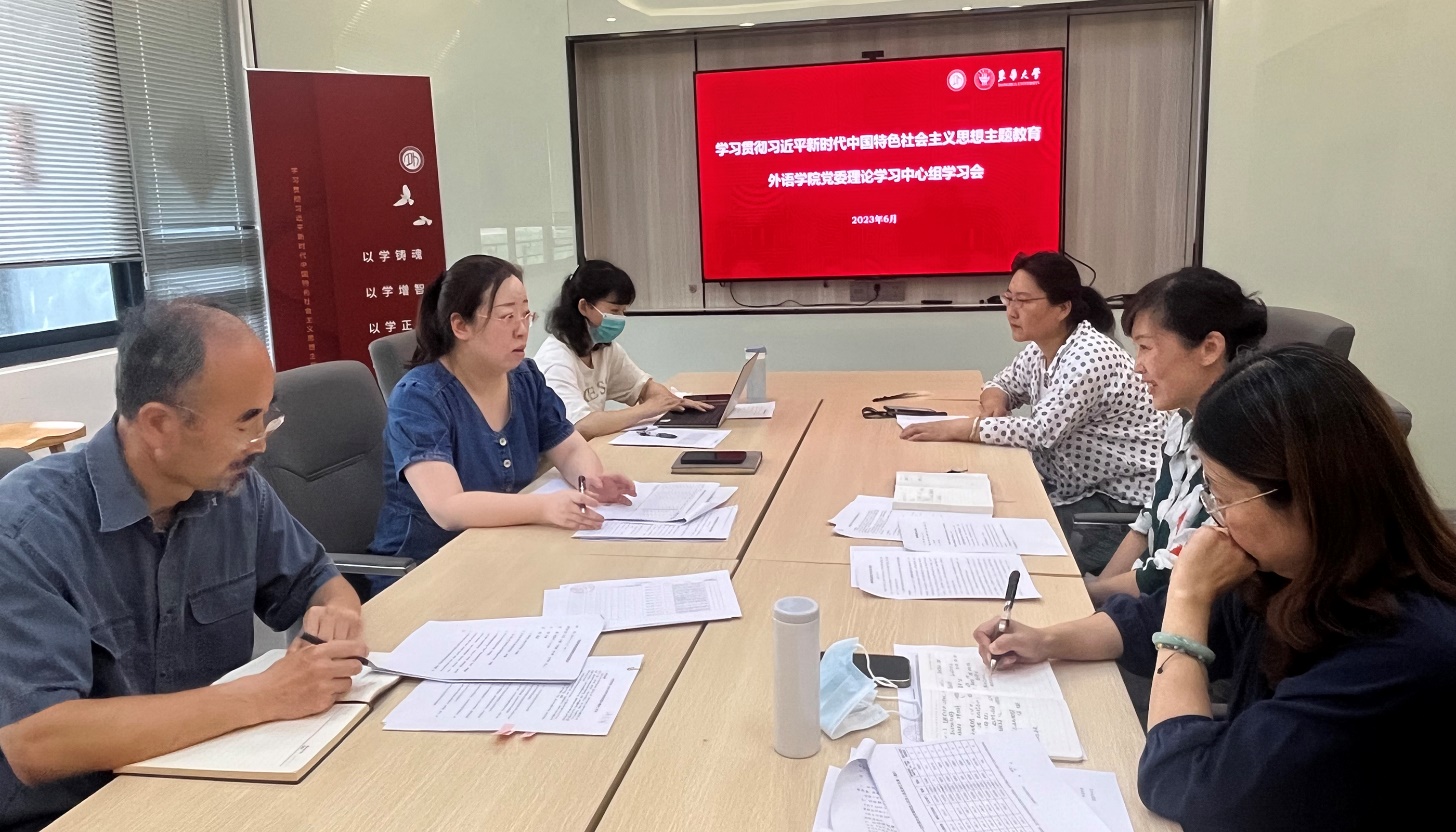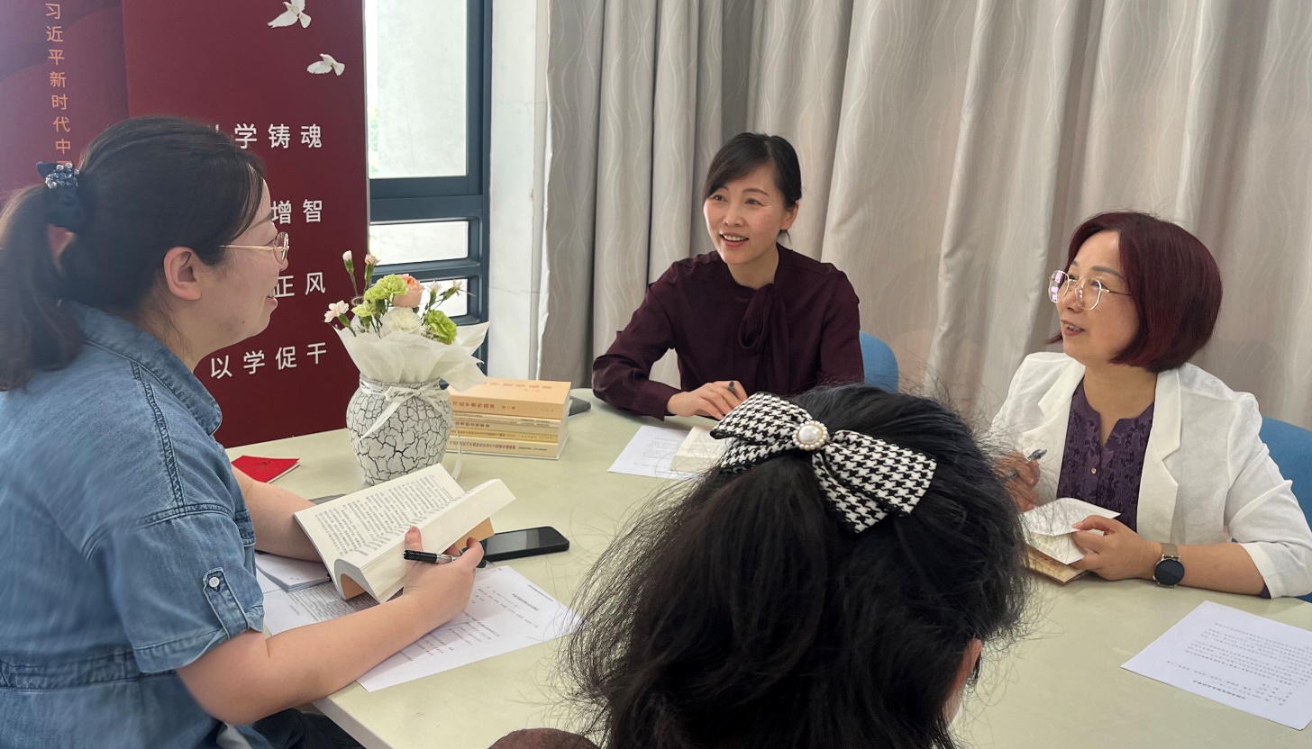 530日,大学英语党支部书记杨捷与支部党员分享学习体会