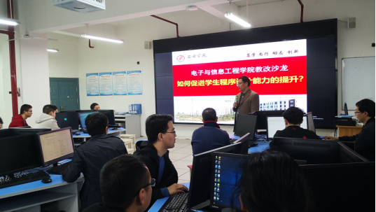 2021年4月25日下午,金年会jinnianhuicom在逸夫科技楼A501实验室开展了主题为“促进学生程序设计能力的提升”教改沙龙活动。院长陈守满、副院长王克刚、各系(教研室)主任、学院全体程序设计语言授课教师参加了此次活动。