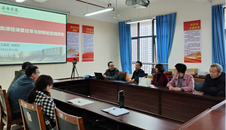 第二阶段,1116日下午电子工程系、物理系专业教师就参加虚拟教研室活动的内容,结合我校电子信息工程专业现状进行讨论交流。丁礼磊首先介绍了电子信息工程专业课程建设与改革情况并提出目前电子信息工程专业相关教学成果较少,专业建设和课堂教学改革深度不够等现实问题。然后老师们针对电子信息工程专业课程教学改革中的具体问题进行了深入交流,并针对自己在教学过程中遇到的问题和一些好的经验做法进行了分享交流,老师们积极性很高,活动气氛热烈。丁礼磊希望各位老师适应当前高等教育形势,树立课程改革意识,日积月累,持续改进;将电子社团、学生竞赛和教学改革有机结合,形成联动效应,提高教学改革效果,提升人才培养质量。