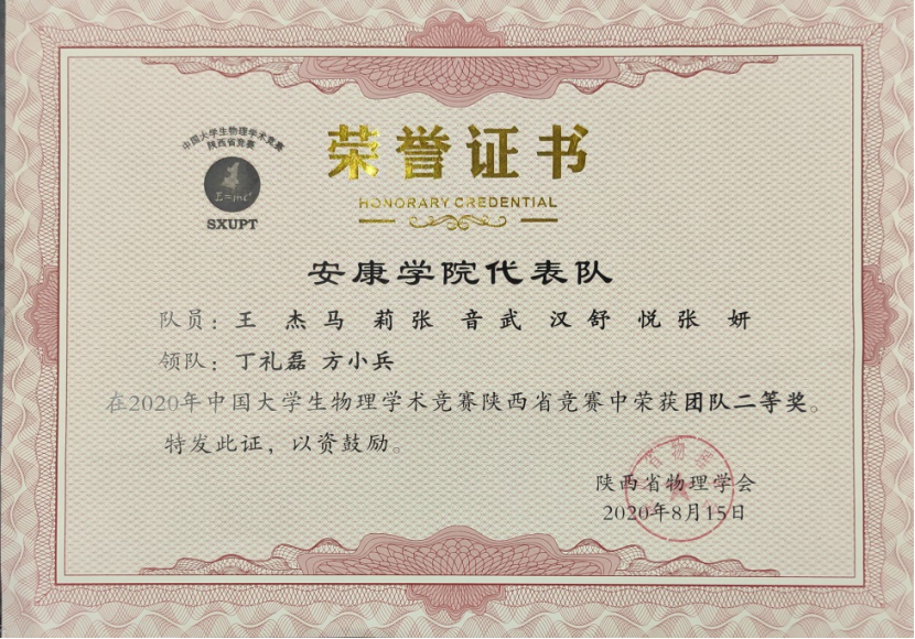7月26日,2020年中国大学生物理学术竞赛省赛举行。由于新冠肺炎疫情的影响,本次竞赛全程采取线上进行。自2020年3月以来,金年会诚信信誉至上牵头,物理系精心组织,通过选拔和3个多月的培训准备,由方小兵、张小丽和丁礼磊3位老师指导的王杰、马莉、张音、武汉、舒悦和张妍6名应用物理学