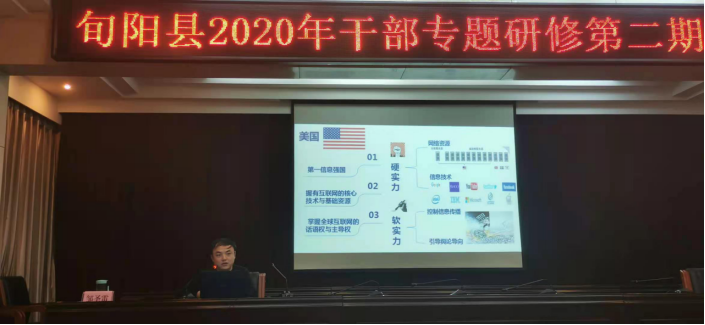 12月17日,金年会jinnianhuicom教师邹圣雷应邀为旬阳县委党校2020年干部专题研修班做“从网络大国到网络强国”的主题报告,旬阳县180名中层干部参加了培训、交流。主题报告会由旬阳县委党校鲁爱民主持。