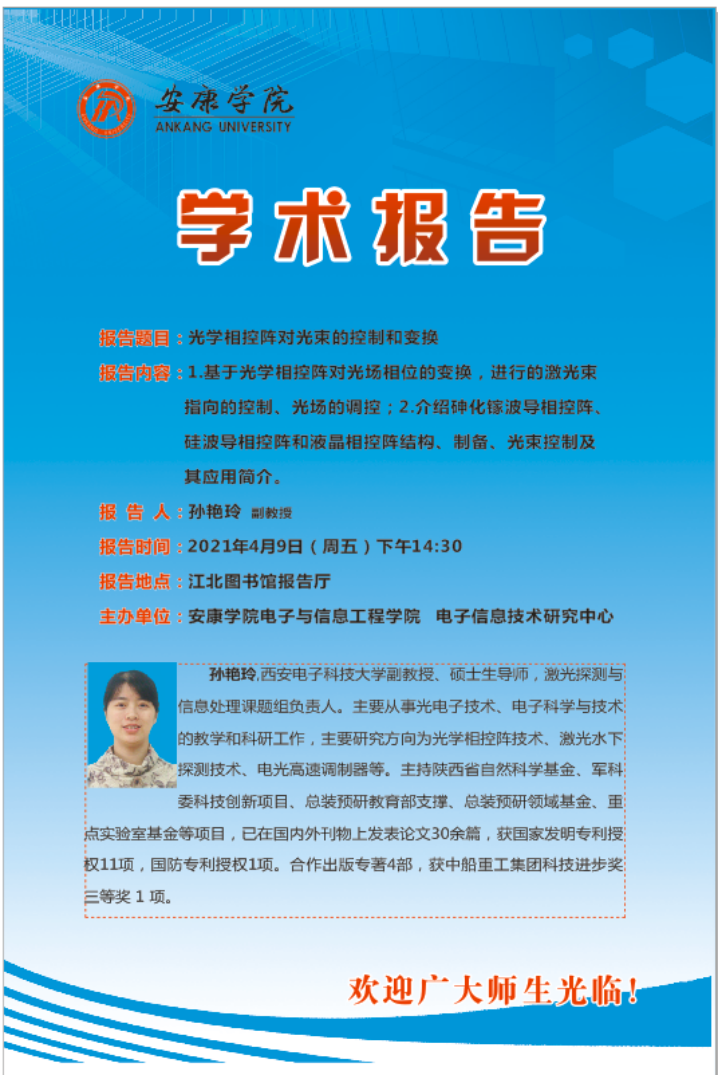 西安电子科技大学孙艳玲教授学术报告