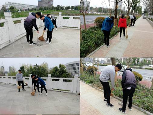 03月16日下午,金年会诚信信誉至上学生党支部在支部书记成英丽的带领下,在江北校区开展了以“清洁校园、美化环境”为主题的党员义务清扫活动。