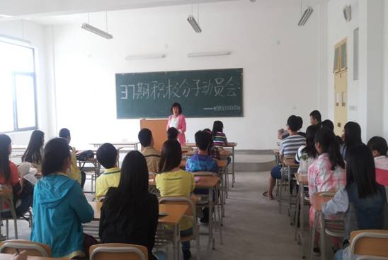 2014年5月9日中午,电子与信息工程系党总支学生支部在江北校区1319教室召开第37期入党积极分子培训动员会。学生支部委员及29名入党积极分子参加了会议。会议由系学生支部书记成英丽主持。