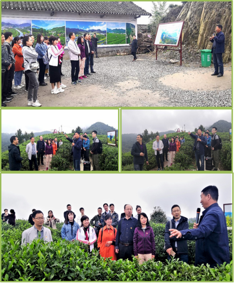 本次活动邀请蒋家坪村原村支书罗延会详细介绍茶园历史,分享习近平总书记来调研的难忘经历。在罗延会的详细讲解下,全体教师和学生沿着习近平总书记的足迹,拾级而上,参观了蒋家坪村女娲凤凰茶叶现代示范园,满怀激动和喜悦的心情重温了习近平总书记调研时走过的路。通过罗延会的讲解和身临其境的感受,大家深切体会到了习近平总书记为民、亲民、爱民、惠民的博大情怀,让全体教师和学生深刻认识到“绿水青山既是自然财富,又是经济财富”、“人不负青山,青山定不负人”的生态文明理念。