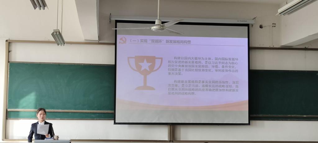 会议正式开始,马克思主义学院贾珍玉向同学们介绍党的十九届五中全会审议通过了《中共中央关于制定国民经济和社会发展第十四个五年规划和二〇三五年远景目标的建议》,该《建议》是开启全面建设社会主义现代化国家新征程、向第二个百年奋斗目标进军的纲领性文件,是今后5年乃至更长时期我国经济社会发展的行动指南。