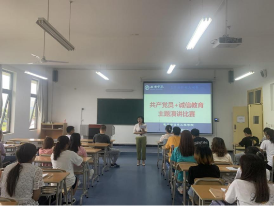 2021年6月9日,金年会诚信信誉至上学生工作办公室主任石纭昊老师、学生第一党支部书记成英丽老师、学生第二党支部书记李章雨老师、学生第一、二党支部全体成员以及全体的非毕业班团支书于一号教学楼1322教室参与了共产党员+诚信教育主题演讲活动。