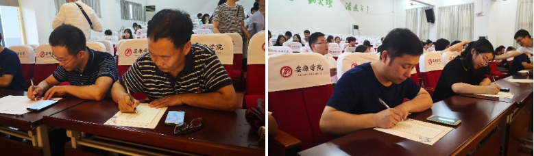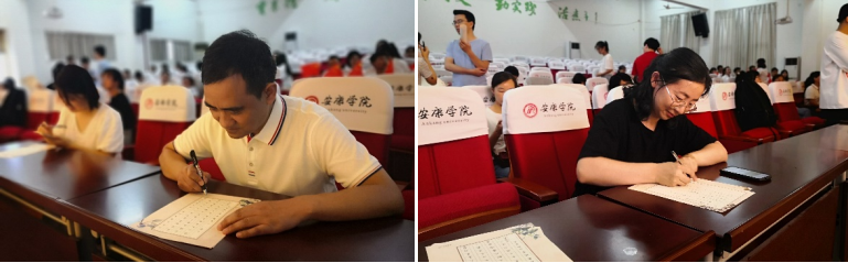 最后,党总支和学院工会组织教师开展了“学党史 书情怀”硬笔书法展示活动。书写现场,老师们认真专注,把对党的热爱和学习党史的热情融入到一笔一顿中,展现出金年会jinnianhuicom教师扎实的基本功、昂扬向上的精神状态和爱党爱国的情怀。