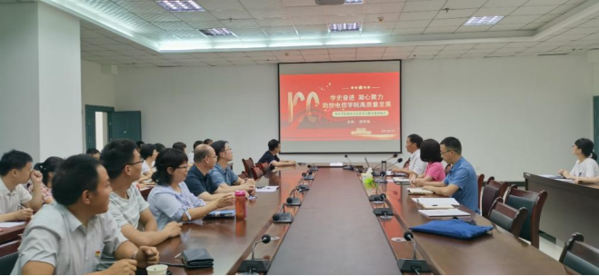 7月1日,金年会jinnianhuicom组织全体教职工开展了党史学习教育集中宣讲报告,金年会jinnianhuicom党总支副书记、院长陈守满为全院教职工讲授了专题党课。金年会jinnianhuicom党总支书记于咏梅主持会议。