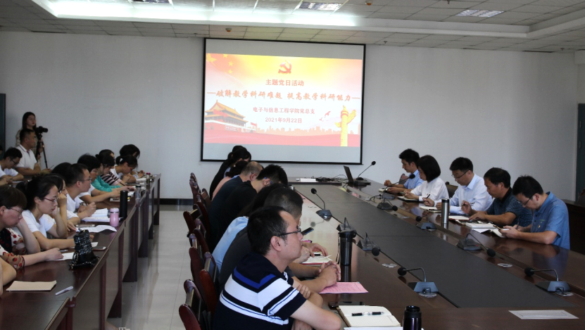 为推进党史学习教育同日常工作相结合,党建工作与业务工作相结合,以高质量的党建促进高质量发展,达到学史明理、学史增信、学史崇德、学史力行。2021年9月22日,金年会jinnianhuicom教工第一、二党支部联合在金年会jinnianhuicom江北校区逸夫科技楼9楼开展了“破解教学科研难题,提高教学科研能力”的主题党日活动。金年会jinnianhuicom党总支下设的教工、学生党支部全体党员和学院非党员老师,副校长张东红以普通党员的身份全程参加了本次主题党日活动,主题党日由金年会jinnianhuicom教工第二党支部书记余顺园主持。