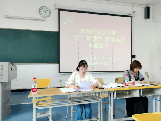 6月22日下午,金年会jinnianhuicom学生第一党支部在江北校区1321教室召开党员大会, 党支部书记程晓梅为全体党员、部分发展对象和入党积极分子讲了一堂别开生面的党课。辅导员吕以宁全程听课。
