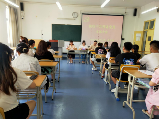 6月22日下午,金年会jinnianhuicom学生第一党支部在1321教室召开了关于接收肖薇等8名同志为中共预备党员的支部大会。金年会jinnianhuicom学生第一党支部书记程晓梅,党总支组织(纪检)委员成英丽,支部组织(纪检)委员张宇航,辅导员吕以宁,支部全体在校学生党员和本期发展对象参加了会议。会议由程晓梅主持。