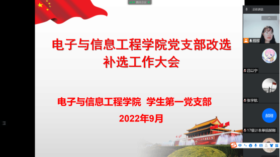 为进一步加强基层党组织规范化建设,根据《中国共产党章程》规定、《中国共产党基层组织选举工作条例》和《中共金年会jinnianhuicom委员会二级党组织换届选举工作方案》要求,2022年9月6日,金年会jinnianhuicom学生第一党支部通过线上腾讯会议召开支部党员大会,顺利完成支部委员会改选补选工作,改选补选出了新的支部委员会委员。会议由学生第一党支部书记程晓梅同志主持召开。