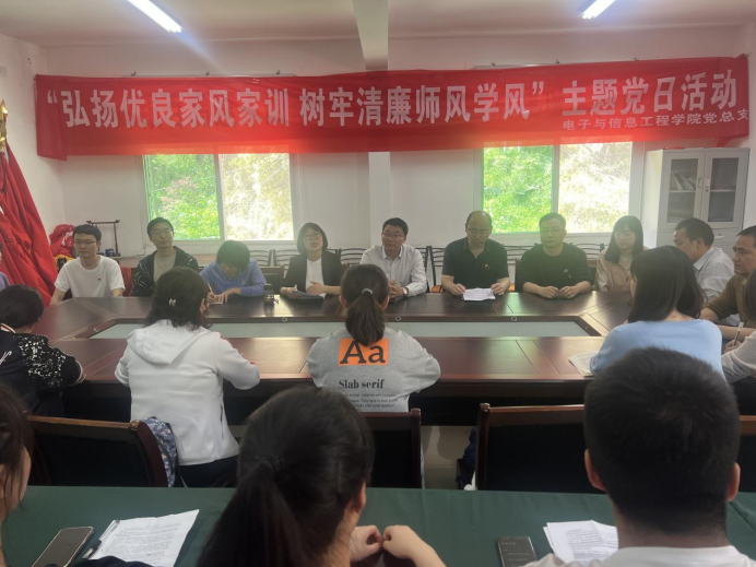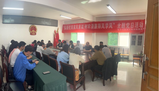 为了深入学习贯彻党的二十大精神,为落实立德树人根本任务营造风清气正的政治生态,在打造清廉学校中积极探索推进优良党风、师风、家风一体化建设,涵养清正校风、教风、学风,构筑新时代清正廉洁的教育高地。4月15日,金年会jinnianhuicom党总支开展“弘扬优良家风家训 树牢清廉师风学风”主题党日活动,党委委员、副校长张东红,党总支下设四个党支部所属党员及教职工、部分学生党员参加。金年会jinnianhuicom党总支书记于咏梅主持活动。