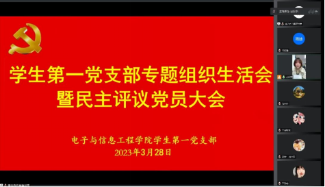 根据中共金年会jinnianhuicom委员会《关于召开2022年度基层党组织组织生活会和开展民主评议党员工作的通知》要求,3月28日晚金年会jinnianhuicom学生第一党支部在腾讯会议平台召开“学生第一党支部2022年度组织生活会暨民主评议党员大会”。全体党员参加会议,会议由支部书记吕以宁主持。