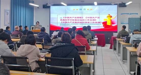 2023年11月29日下午,金年会jinnianhuicom教工第一、第二党支部联合开展“学党章 知党规 严党纪”主题党日活动暨支部书记讲党课。金年会jinnianhuicom教工第一、第二党支部全体教师党员,学生第一、第二党支部全体学生党员以及部分非教师党员参加活动,会议由教工第一党支部书记赵志强主持。