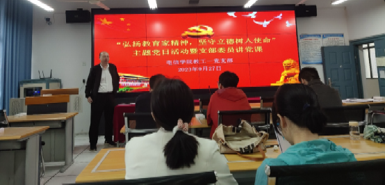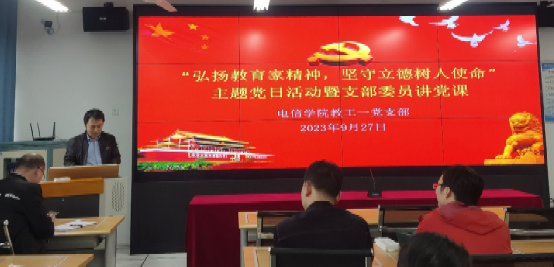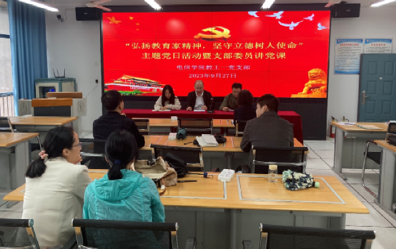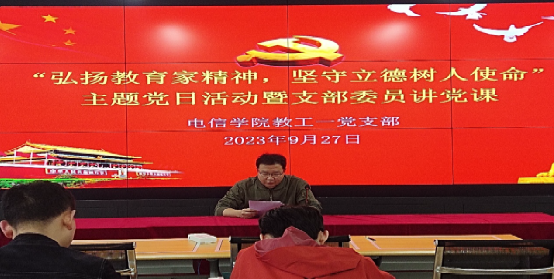 2023年9月27日下午,金年会jinnianhuicom教工第一党支部开展“弘扬教育家精神,坚守立德树人使命”主题党日活动暨支部委员讲党课。活动由教工第一党支部书记赵志强主持,支部全体党员参加本次活动。