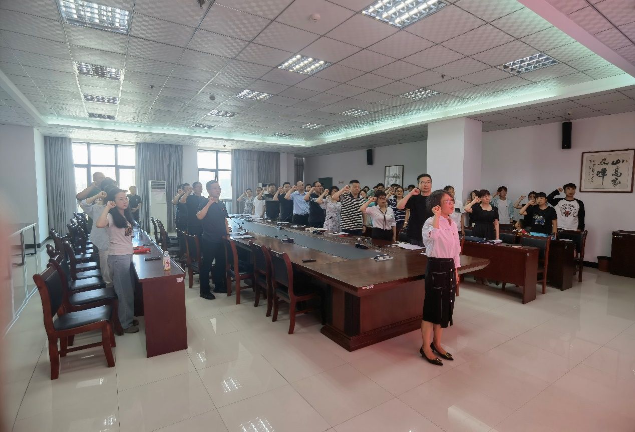 随后,全体党员再一次重温入党誓词,紧握右拳,向着党旗庄严宣誓,回顾入党初心,牢记党员使命。