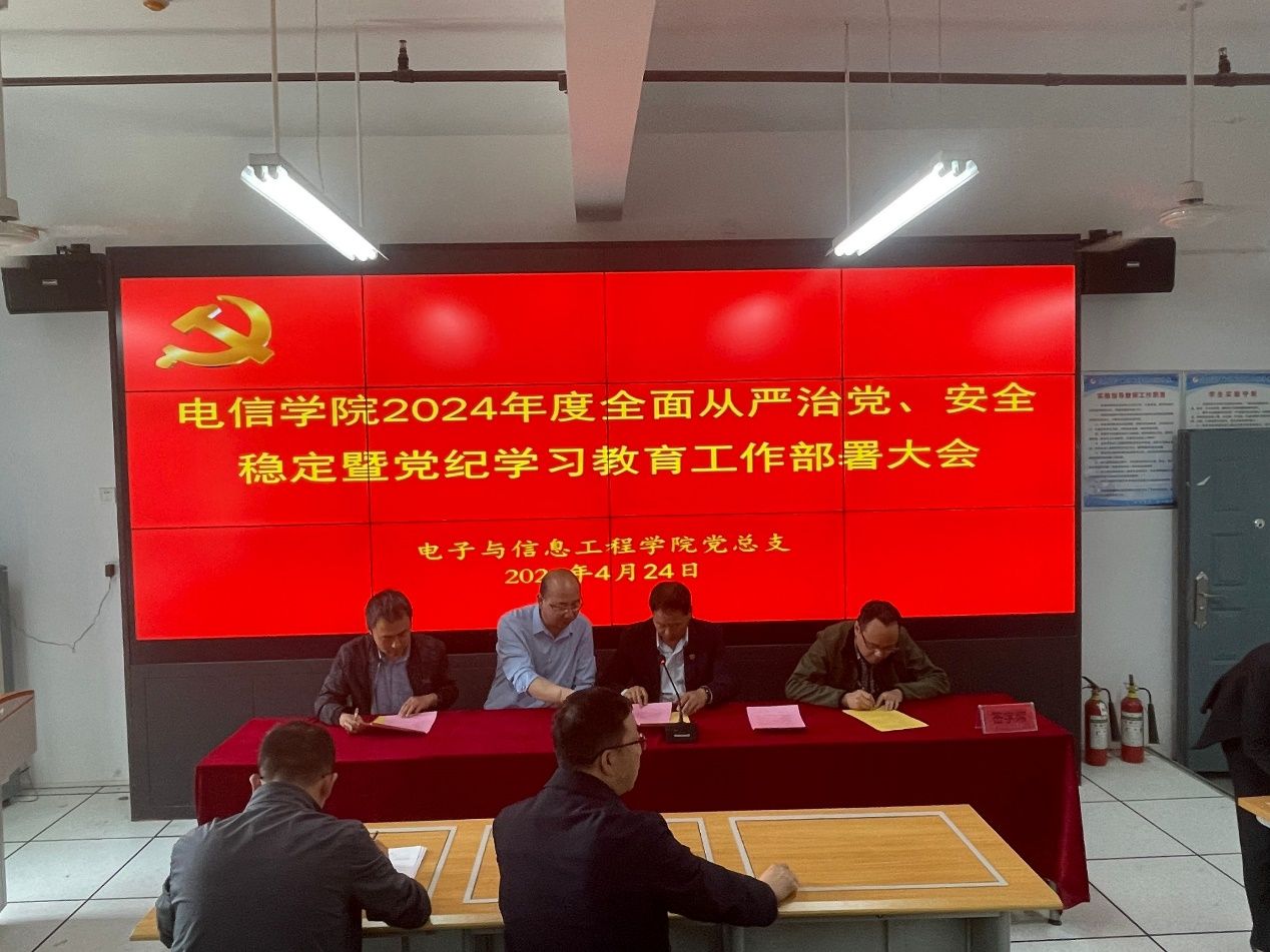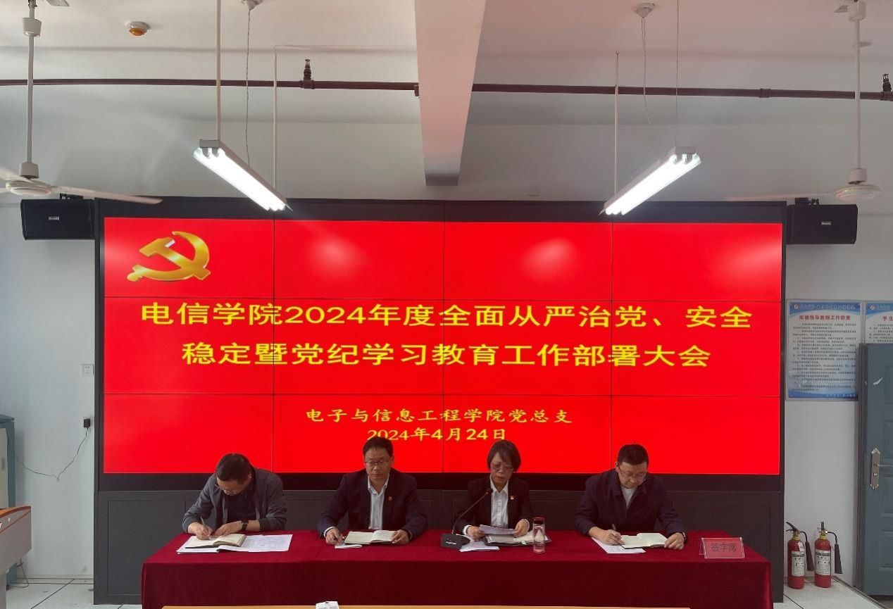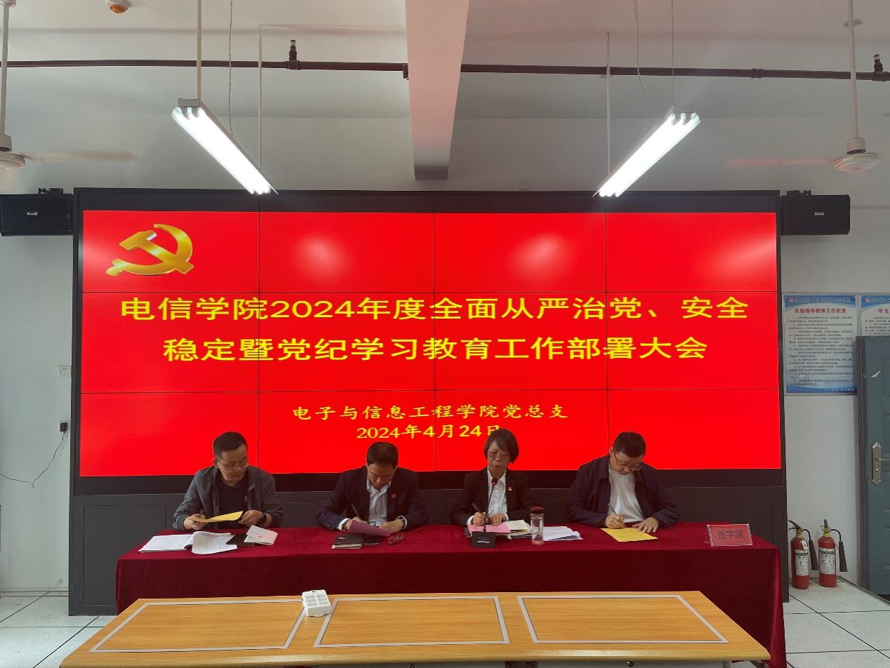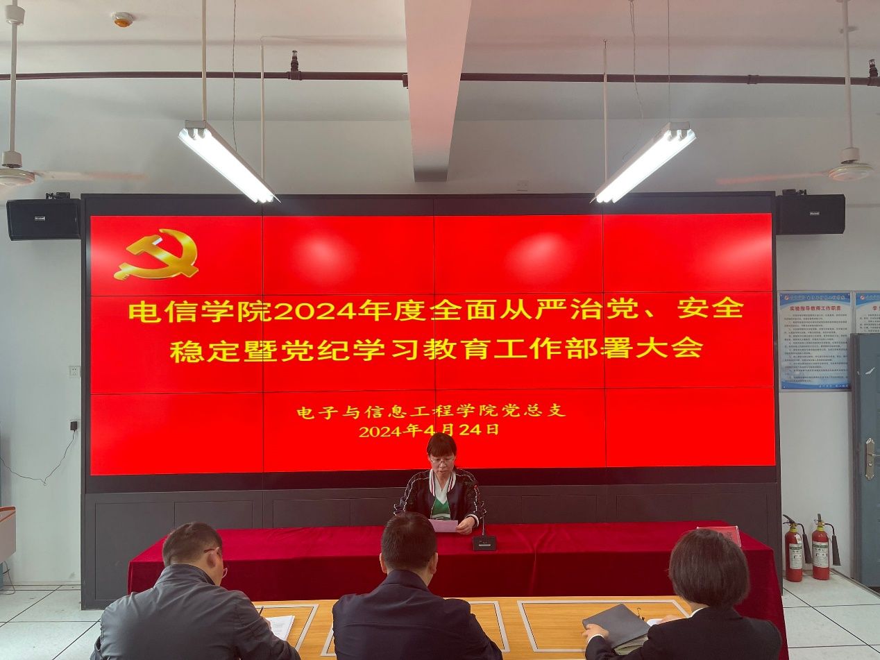 为深入学习贯彻习近平新时代中国特色社会主义思想、党的二十大精神,深入贯彻落实中省纪委全会精神,认真扎实开展党纪学习教育,深入贯彻落实中省和学校党委全面从严治党暨安全稳定和党纪学习教育工作部署会议精神,金年会诚信信誉至上于4月24日在江北校区逸夫科技楼B602召开全面从严治党、安全稳定暨党纪学习教育工作部署大会,金年会诚信信誉至上全体教职工参加,会议由党总支书记于咏梅主持。