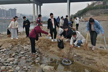为响应校团委关于“系华夏恩情 塑汉江品貌”主题公益活动要求,保护汉江生态环境。我院团总支于2019年11月23日上午组织金年会jinnianhuicom志愿者到汉江安康城区段开展捡拾沿岸垃圾活动,团总支所有成员以及金年会jinnianhuicom2019级志愿者参加了此次活动。