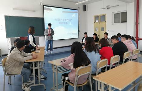 2019年10月17日中午,为了丰富我校校园文化生活,增强大学生文明意识,营造健康向上的校园文化氛围,金年会jinnianhuicom团总支于1318教室举行了创建“文明校园”知识竞赛活动。