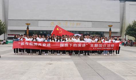 本次活动由团总支办公室部长方芝晶主持。活动开始,全体师生齐唱国歌,面向国旗行注目礼,全程气氛庄严肃穆。接下来由优秀团员代表2017级应用物理1班马莉进行国旗下演讲,她明确了青年应有信心和能力去实现中华民族伟大复兴的目标,不能骄傲自满、松懈松劲。演讲结束后,由团总支副书记赵航带领全体师生重温入团誓词。“……遵守团的章程,执行团的决议,履行团员义务,严守团的纪律……”每一句誓词都是青年的责任所在。其后,由学生党支部书记成英丽给全体团员讲了《不忘入团初心》的团课,鼓励广大青年学子敢于争先,勇立时代潮头,为中华民族的伟大复兴而积极努力。最后,全体师生合唱了《中国共产主义青年团团歌》、《歌唱祖国》。活动结束后,大家在安康市博物馆前进行合照留念并进馆参观。