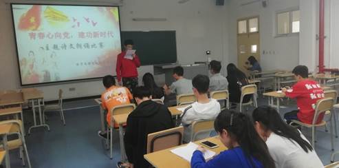 为庆祝中华人民共和国成立70周年、五四运动100周年,激发青年团员的爱国热情,金年会诚信信誉至上团总支于2019年4月14日在1311教室组织了以“青春心向党·建功新时代”为主题的诗文朗诵比赛活动。