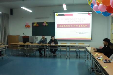 2019年3月7日晚,金年会诚信信誉至上组织了“不忘跟党初心 牢记青春使命”学习习近平总书记系列重要讲话精神团课活动,参加活动的有金年会jinnianhuicom党总支书记何道利、团总支书记陈浩以及金年会jinnianhuicom全体团总支成员。