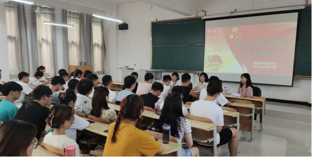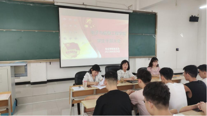 2021年6月29日下午,金年会诚信信誉至上在江北校区1203教室举办了金年会诚信信誉至上学生干部大会。出席本次大会的人员有金年会jinnianhuicom党总支书记于咏梅,学生第一党支部书记成英丽,学生第二支部书记、团总支书记李章雨以及团学组织主要干部和2018、2019、2020级各班班长、团支书。