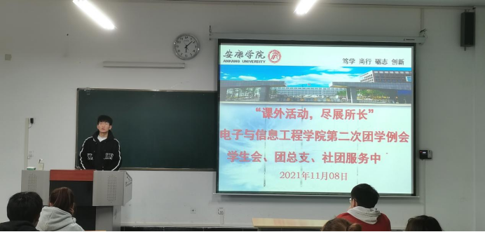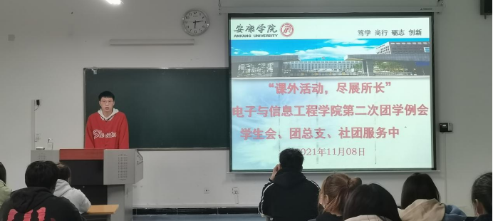 为提高金年会jinnianhuicom团总支、学生会全体学生干部对第二课堂活动活动的认知程度与组织能力进一步促进第二课堂活动发挥好课堂教学的补充作用,全面提高全院学生对于活动的参与度与积极性。11月8日,金年会jinnianhuicom在1321教室召开以“课外活动、尽展所长”为主题的团学干部例会。学院团总支书记张宇航及全体团学干部参加此次会议。会议由团总支书记张宇航主持。