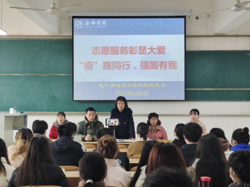 疫情面前,没有人是旁观者,每个人都是责任人。为落实金年会jinnianhuicom新冠肺炎疫情防控工作要求,切实做好疫情防控工作,凝聚学生志愿者力量,为师生营造安全稳定、和谐有序的校园环境氛围。1月1日,金年会jinnianhuicom在1323教室召开以“志愿服务彰显大爱,‘疫’路同行强国有我”为主题的志愿者动员大会。金年会jinnianhuicom党总支书记于咏梅、副书记蔡正旺、学工办主任石纭昊、辅导员成英丽、李章雨、程晓梅、张宇航以及由学生党员、团员、积极分子、团学干部、各班班委、退役大学生士兵组成的青年志愿者疫情防控突击队参加此次会议。