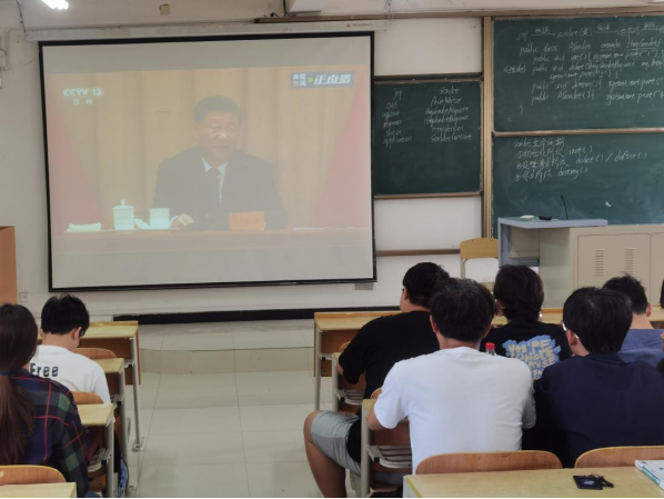 金年会jinnianhuicom学生第一、二党支部全体党员及学生干部在教学楼1312集中观看大会