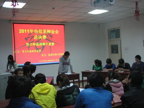 10月27日晚,电子信息工程系团总支在1429室举行金年会jinnianhuicom2011年金雀杯精英辩论赛系内选拔赛决赛。