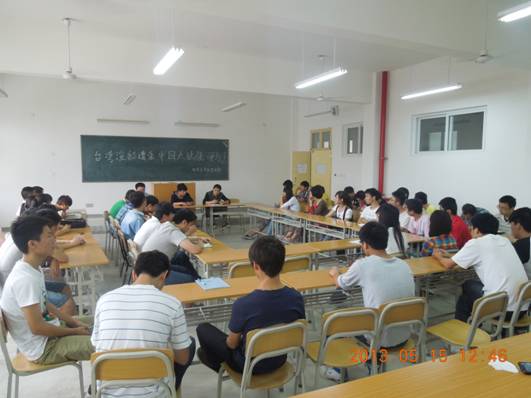 5月22日下午,电子与信息工程系学生党支部在1321教室召开主题为“台湾渔民遭袭,中国政府强硬与否?”的座谈会。台湾自古是就是中国的领土,台湾同胞安危时刻牵连着大陆人民的心。参会同学踊跃发言,支持政府严惩菲方凶手,进行经济赔偿,公开向受害人及家属道歉。同时,学生在会上形成共识:作为大学生应该看清事情本质,理性思考,不盲目跟风,认识肩负的使命,做好自己的本职工作。