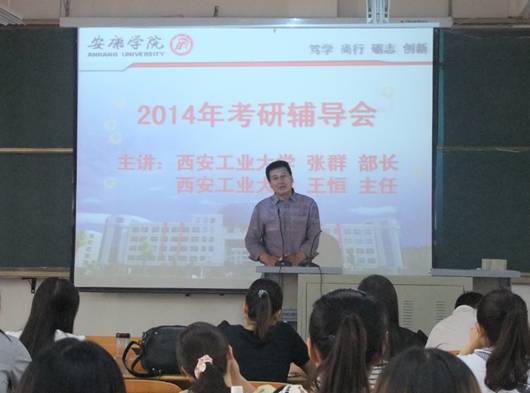 张群部长向同学们讲解了考研的现状和西安工业大学研究生的相关情况,使同学们对考研的相关知识有了进一步的了解。王恒主任向同学们讲解了研究生报考的相关知识以及需要注意的事项,分析了我校的专业特点和报考方向,即让同学们学到了报考学校的技巧,也为随后的考研做好了充足的准备。
