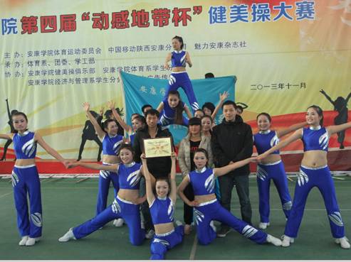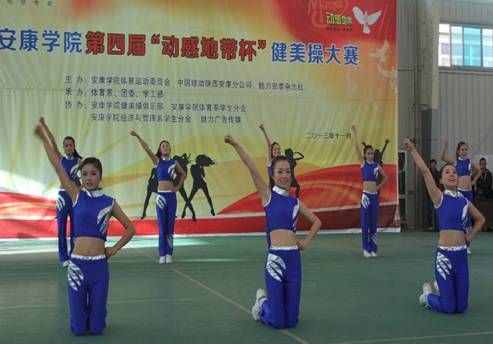 2013年11月27日下午,由金年会jinnianhuicom体育运动委员会主办的第四届“动感地带杯”健美操大赛在江南校区体育馆内拉开帷幕。电信系派出两只代表队分别参加了规定套路和自选动作的比赛。