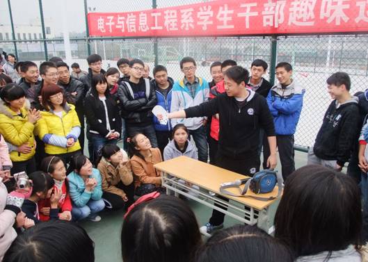 2013年12月8日,电子与信息工程系在江北校区篮球场举行学生干部趣味运动会,出席活动的老师有系党总支书记李红兵、团总支书记石纭昊以及辅导员王贵新。
