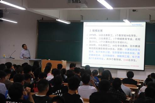 9月25日晚金年会jinnianhuicom在1301教室举行新生入学教育。参会的有副院长王庆春,辅导员陈浩,2018级全体新生。