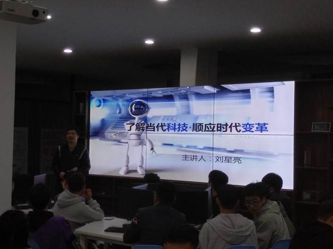 刘星亮老师结合人工智能、物联网等当前科技热点为例,为同学们介绍当前科技发展趋势,结合相关理论知识和实际应用,进行了生动地讲演。演讲内容引用大量数据和实例,让学生真切感受到当代科技发展的日新月异。内容生动、丰富多彩的讲座,给同学们留下了深刻印象,开阔了视野,引导了社团科技活动方向。