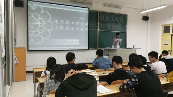 在会议中,团总支副书记史冬从社会主义核心价值观的涵义、特点、基本内容以及如何培育和践行社会主义核心价值观等方面给大家进行了深入浅出的讲解,并深刻向大家解读了“富强、民主、文明、和谐,自由、平等、公正、法治,爱国、敬业、诚信、友善”24字的社会主义核心价值观的实质内涵。