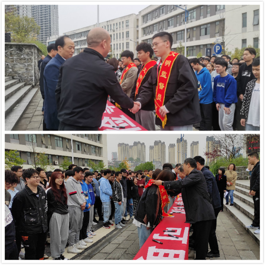 学生代表2017级计算机科学与技术专业桂军虎同学宣读了金年会jinnianhuicom关于“厉行节约 反对浪费”的倡议书,并带领全体师生进行了宣誓!号召同学们以知为行,传承美德,争做勤俭用餐的践行者;从己做起,拒绝浪费,争做节水节电的示范者;推己及人,相互提醒,争做节能为荣的推动者。
