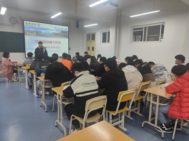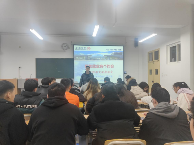 2021年12月11日下午,金年会诚信信誉至上在江北校区教学楼1318教室召开了“我和就业有个约会”为主题的就业经验交流座谈会。此次交流座谈会邀请了2018级两名已经成功就业的学生分享他们的求职经历,电子信息工程专业的毕业班全部学生参加了此次会议。会议由辅导员成英丽老师主持。