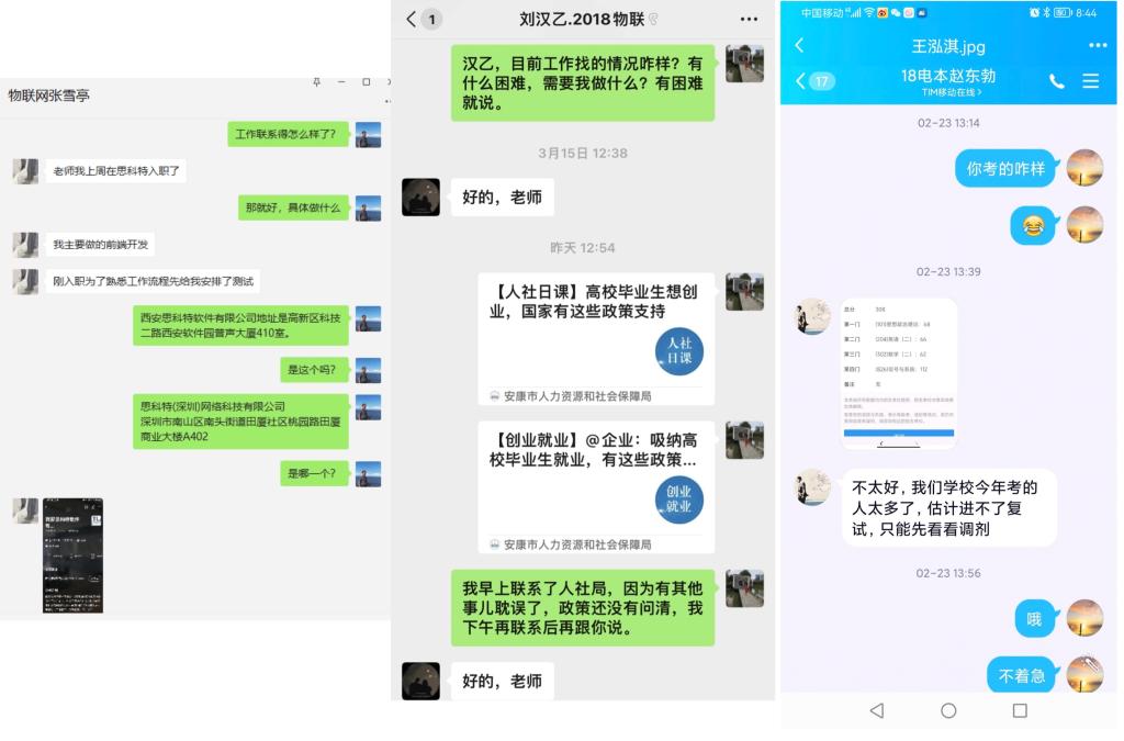 金年会jinnianhuicom辅导员李章雨、程晓梅、张宇航联系就业帮扶学生