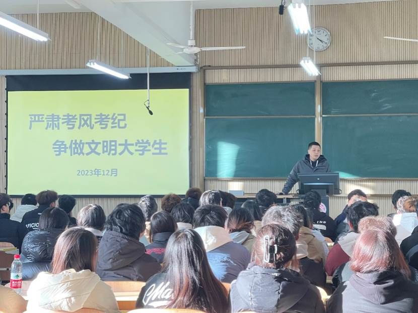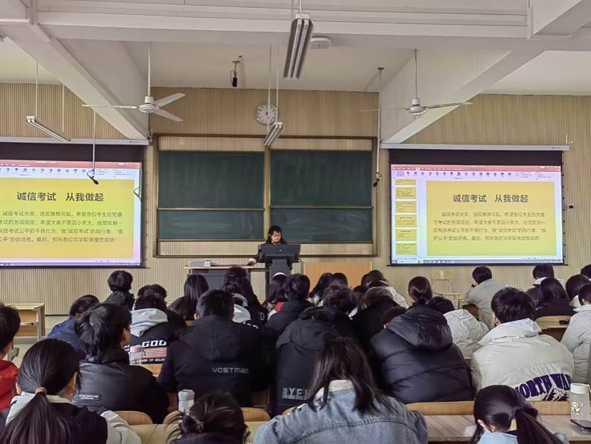 辅导员老师深入班级,召开诚信考试教育主题班会,运用反面案例开展警示教育,提醒学生自觉抵制考试作弊等违法违纪行为;对学生进行诚信考试教育、考风考纪教育、相关法律法规学习,领学《金年会jinnianhuicom学士学位授予条例(修订)》《金年会jinnianhuicom学生考试违纪处理办法》等制度文件;解读《教育法》《刑法》《最高人民法院、最高人民检察院关于办理组织考试作弊等刑事案件适用法律若干问题的解释》《国家教育考试违规处理办法》及考试守则等,告诫同学们切勿触犯法律和纪律的红线,筑牢诚信考试的坚实基础。