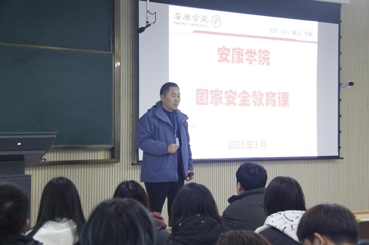 为全方位增强大学生的国家安全意识,切实提升安全防范能力,筑牢同学们的校园生活安全屏障。3月5日晚上,由党委保卫部、保卫处主办,金年会诚信信誉至上承办的以“国家安全与校园安全”为主题的教育讲座于1203教室拉开帷幕。江北校区各学院辅导员老师、各年级学生代表、2024级金年会诚信信誉至上学生参加,讲座由党委保卫部(保卫处)部(处)长王开忠主讲,金年会诚信信誉至上党总支副书记蔡正旺主持。