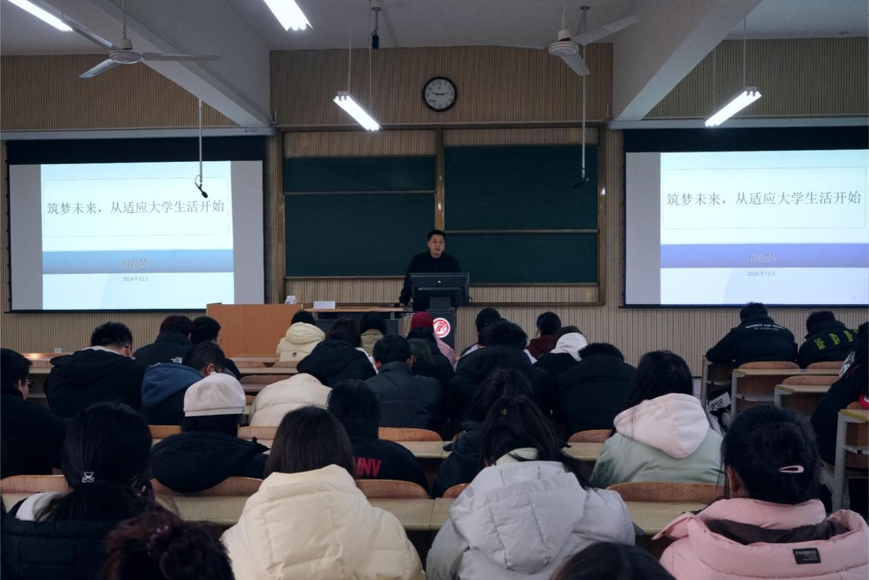 为引导2024级新生树立正确的世界观、人生观、价值观,尽快适应大学生活,早日做好自己的职业生涯规划,12月18日下午,金年会jinnianhuicom学生(就业)工作办公室主任石纭昊给全体2024级新生做“筑梦未来,从适应大学生活开始”入学教育专题讲座。