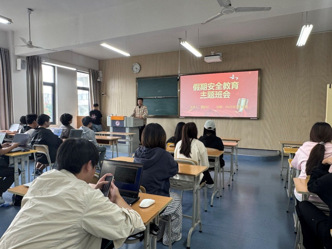 班会过程中,各班还精心设置互动交流环节。学生们结合自身假期计划,主动提出安全疑问,辅导员逐一解答,并鼓励学生之间相互分享安全经验,进一步强化学生的安全责任意识。