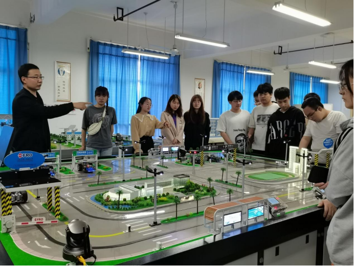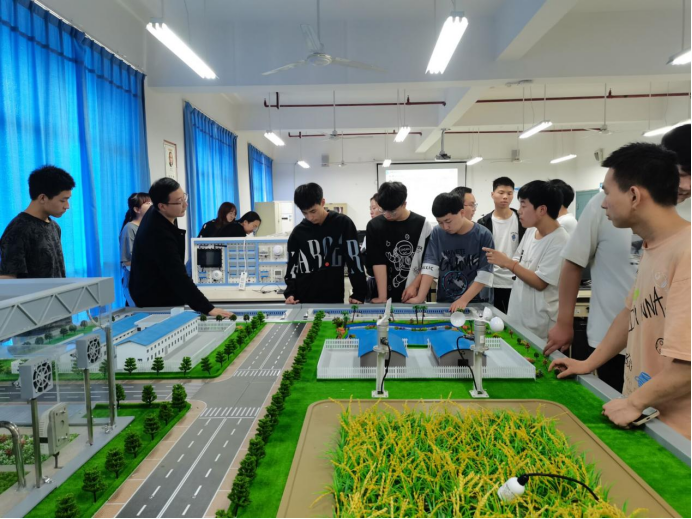 随后,同学们集体参观了物联网综合实验室,观摩了智慧交通沙盘和智慧农业沙盘,并亲自进行了智慧家居场景的实际体验。