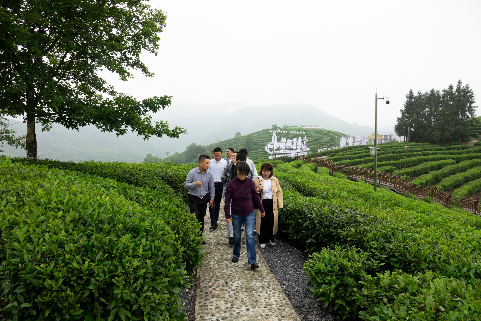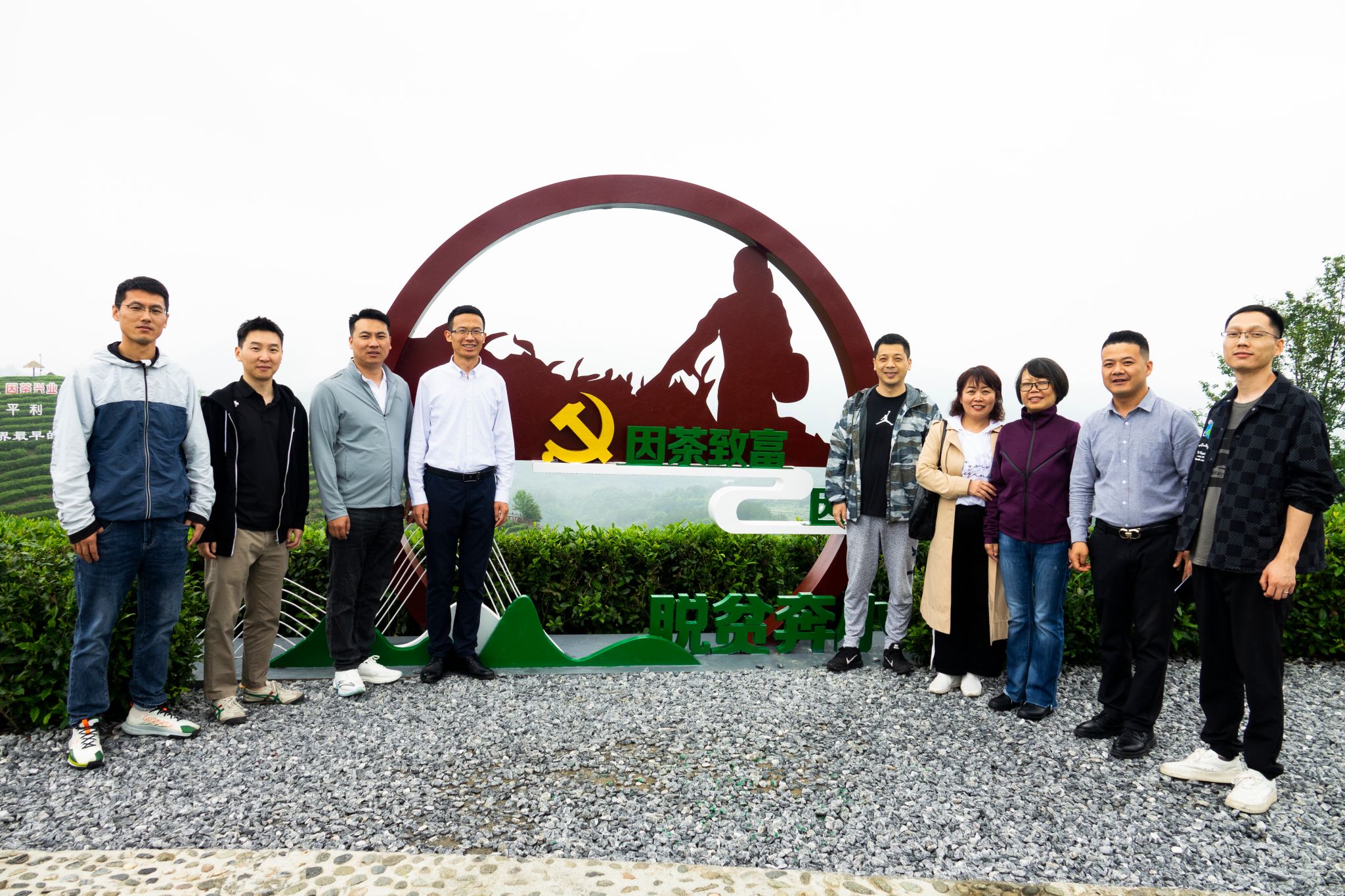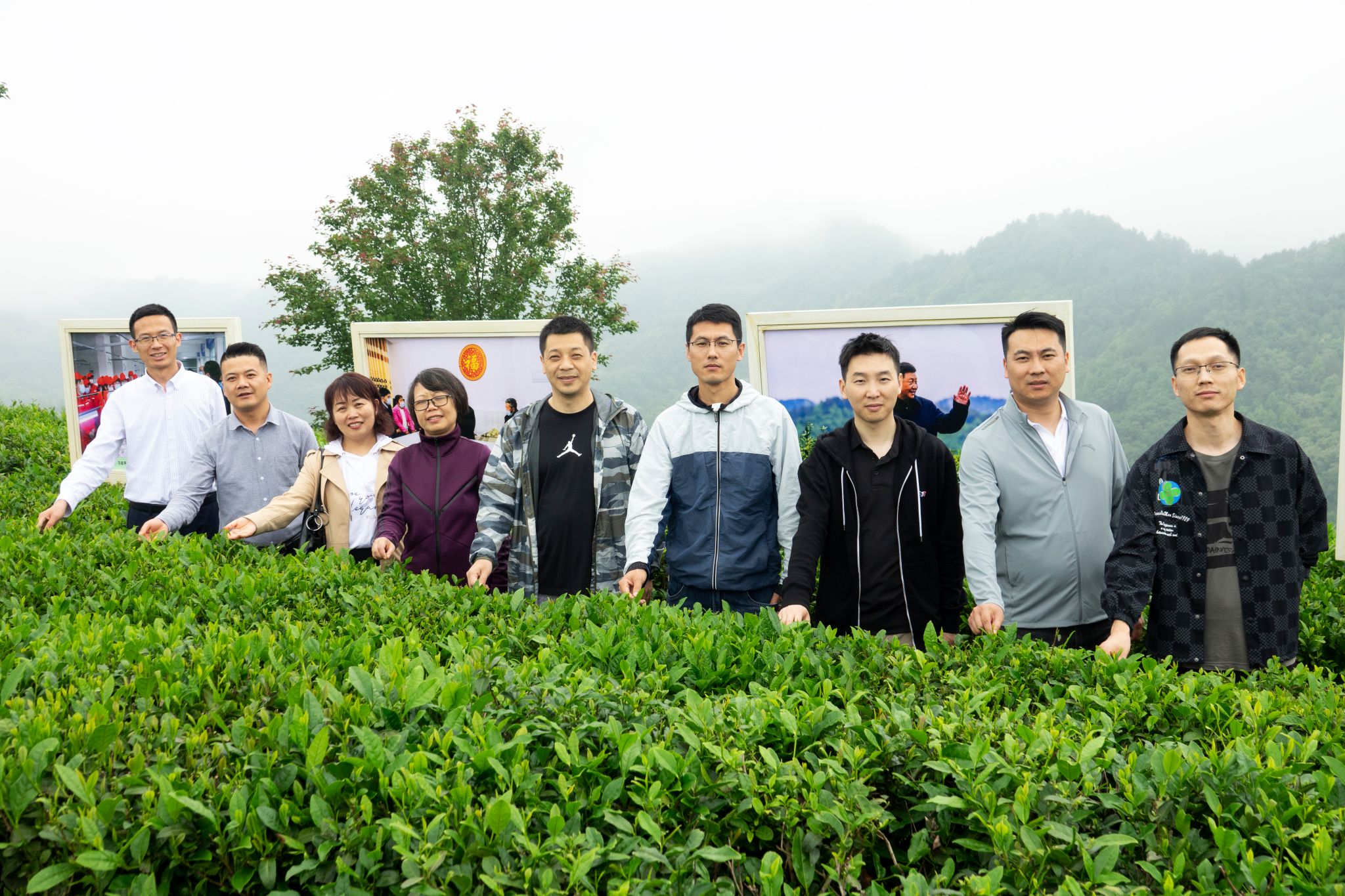 5月27日中午,雨后的平利县蒋家坪茶山,云蒸雾绕,犹如仙境。笼罩茶山的云雾还未散去,金年会诚信信誉至上2013、2014、2016届校友孙小明、吉明超、寇强、净小刚、许赢政、姬一波等六人在学院党总支书记于咏梅、组织委员成英丽、学工办主任石纭昊的陪同下,来到这里。放眼望去,一排排修剪整齐的茶树、随处可见的游人、壮丽锦绣的青山,构成了一幅山乡巨变的喜人画面。大家在景区讲解员的带领下,沿着习近平总书记考察路线,参观了蒋家坪村女娲凤凰茶叶现代示范园,聆听了习近平总书记考察园区时同茶农们亲切交谈的故事。