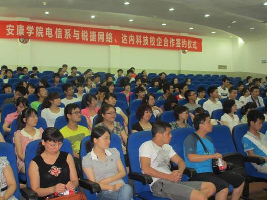 6月21下午,在1号教学楼6楼报告厅隆重举行电信系与锐捷网络、达内科技校企合作签字仪式。学校副校长陈刚教授、锐捷网络西北大区市场总监史光耀、达内科技陕西中心主任陈相峰、教务处处长钟生海、电信系主任张东红、党总支书记李红兵和电信系全体教师,计算机、电子信息工程专业200多名学生参加了签字仪式。大会由张东红教授主持。